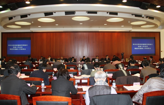 2013年12月19日,教育部召开第四次推进新疆教育跨越式发展工作会议暨教育援疆工作部署会。教育部副部长鲁昕出席会议并对进一步推进教育援疆工作进行全面部署。教育部民族教育司副司长张强传达全国第四次对口支援新疆工作会议精神并对近期具体工作进行布置。会议安排江苏省教育厅、北京市教委以及清华大学、北京大学作交流发言,介绍教育援疆工作做法、成效和下一步工作打算。