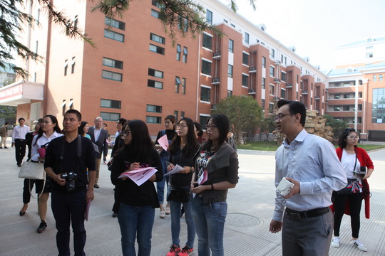 在海门中学,采访团听取了校长石鑫的学校介绍,近年来,学校通过不断的实践反思和机制创新,使学校的管理有金字塔式的层级管理逐步添加扁平化管理元素,提高教育现代化的科学水平。记者们兴致盎然地参观了元智科学楼、课程基地中心、科学实验室、模拟汽车驾驶室、美术展览馆,感受到了百年老校文化积淀和教改创新所带来的“敦品、力学、大气、卓越”的文化气息。