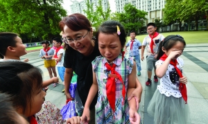 南师附小的教师节庆祝活动中,听说曾教过自己的尹不凡老师要退休,三(5)班的孩子们哭成一团
