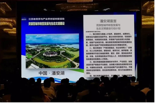 活动举行中国资源型城市转型发展与乡村振兴研究中心揭牌和江苏高校资源环境类协同创新中心联合体启动仪式。7所高校与12家政企代表分别签订合作协议。与会代表参观了资源型城市转型发展产教协同创新、生态文明建设产教协同创新成果展。活动举办“资源型城市转型发展产教协同育人”“资源型城市生态文明建设产教协同创新”分会。徐州市、滁州市、宿迁市、抚顺市、毕节市、宿州市等资源型城市联合发布由中国矿业大学发起的《潘安湖宣言》,倡导资源型城市转型与生态文明建设共识行动。