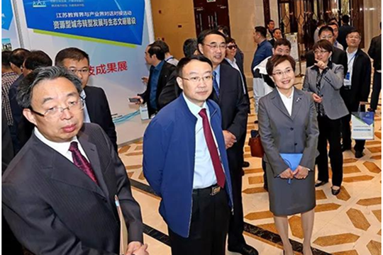 5月7日,“江苏教育界与产业界对话对接活动——资源型城市转型发展与生态文明建设”在徐州市举行。活动由省教育厅、省国土资源厅、省环保厅和徐州市人民政府主办,中国矿业大学和徐州矿务集团有限公司承办,徐州市贾汪区人民政府协办。教育部科技司司长雷朝滋,省教育厅厅长、省委教育工委书记葛道凯出席会议并讲话,省教育厅副巡视员袁靖宇、省国土资源厅副厅长李闽、省环保厅副厅长于红霞和徐州市委常委、常务副市长王安顺出席会议。