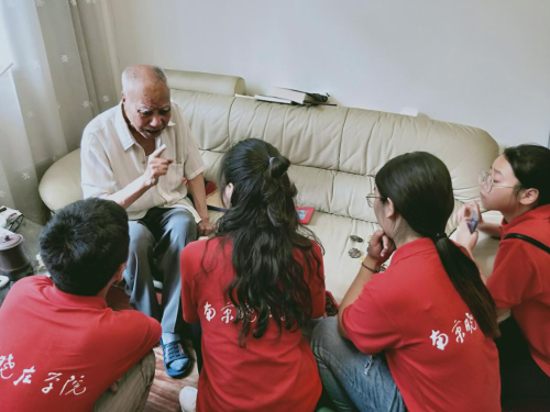 寻访革命英雄,学习光荣事迹。实践团成员拜访了革命英齐金炳老将军。齐金炳老将军,生于1922年,15岁时的他离开家乡参加八路军。因表现突出,当年就成为了一名共产党员。他先后参加了抗日战争、解放战争、抗美援朝,从抗日战争时期连队副指导员,成长为抗美援朝时期的团长,离休前担任新疆军区参谋长,南京军区炮兵顾问。1982年,戎马大半生的齐金炳老将军从让人热血沸腾的军营搬到了淡泊宁静的干休所。面对实践团成员,齐老将军诉说了自己的入党初心和从军故事,朝鲜战争爆发时,担任解放军某团团长的他为配合大部队行动,曾带领部队坚守阵地整整7天,经过激烈战斗,做到了“人在阵地在!”老将军用自己行动诠释了党的宗旨和神圣使命,也更加坚定了年轻学子们的入党决心。