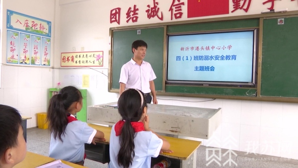 老墨河边不远,就是港头镇中心小学。和新沂市其他学校一样,每天上下学时间,港头小学校门口都会播放防溺水教育音频,校园里、教室内,布置了防溺水海报、黑板报,各班级都要上防溺水教育课。
