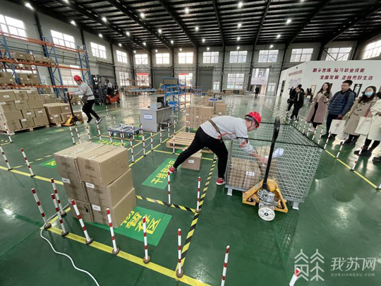 在淮安市高级职业技术学校,物流专业的同学正在学校物流基地为几个月后的国赛做准备