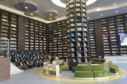 同样位于盐城经开区的新都路小学,也是一所新办校,去年9月刚刚开始招生。这所书院式的校园处处充满儒雅风韵,松木郁盛,芬芳馥郁。696座剧场,千人餐厅、图书馆、空中运动场、26个功能教室等设施一流,是一所名副其实家门口的“网红”最美校园。