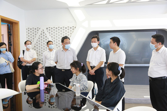 在昆山登云科技职业学院,葛道凯一行听取了学校发展现状,详细了解教学改革等内容。葛道凯强调,要坚持立德树人,引导和帮助学生把握好人生方向;要始终把提高教育教学质量作为办学治校的出发点和落脚点,培养更多适合产业发展的技能型人才;要守住学校安全稳定底线,做到常态化疫情防控不松懈。