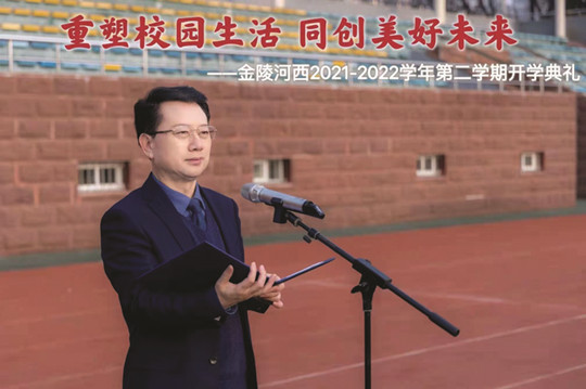在金陵中学河西分校的开学典礼上,校长穆耕森的致辞金句频出,他从时间、空间、关系三个维度,跟同学们一起探讨如何重塑学校生活:“我们向课堂要学习的质量、向活动要育人的效益,学会时间的‘断舍离’,追求更细致的时间‘颗粒度’。”