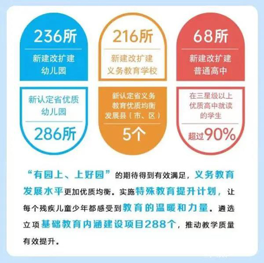 义务教育方面,要坚持优质均衡,全面实施新一轮义务教育薄弱环节和能力提升计划,启动优质学校建设,推动更多地区创建成为国家和省级义务教育优质均衡发展县(市、区)。