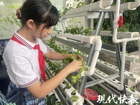 具体怎么回事?原来,学校有一个校内劳动实践基地生态馆,馆里有小菜园、菌菇培育屋、鱼水共生系统、生命孵化系统、小养殖等项目。不仅如此,这样的生态馆还很 " 智能 "。