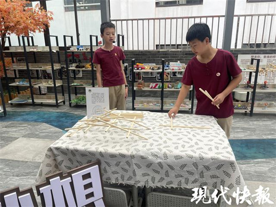 " 这座桥没有用一根铆钉,也没有用一瓶胶水,却很稳定。" 五(4)班的曹启程今年刚刚加入桥思妙想社团,搭建桥梁看似考察动手能力,其实综合调动了孩子们的多学科融合知识。" 在桥梁搭建中,我感受到了‘对称’的美。此前,我们还在老师的带领下去观察了文德桥。" 在曹启程看来,社团既好玩又能动脑,让他收获了很多。