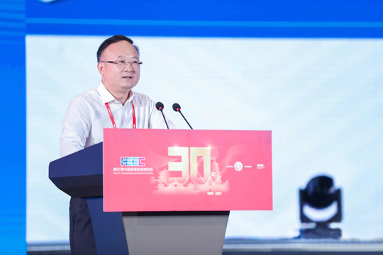 8月4日,杨树兵还应邀出席第57届中国高等教育博览会开幕式,并以《深化产教融合的认识与江苏实践》为题在第六届产教融合发展大会上作专题报告,介绍了江苏深化产教融合、校企协同育人的经验做法。与会领导嘉宾共同启动2022年度“校企合作·双百计划”工作。