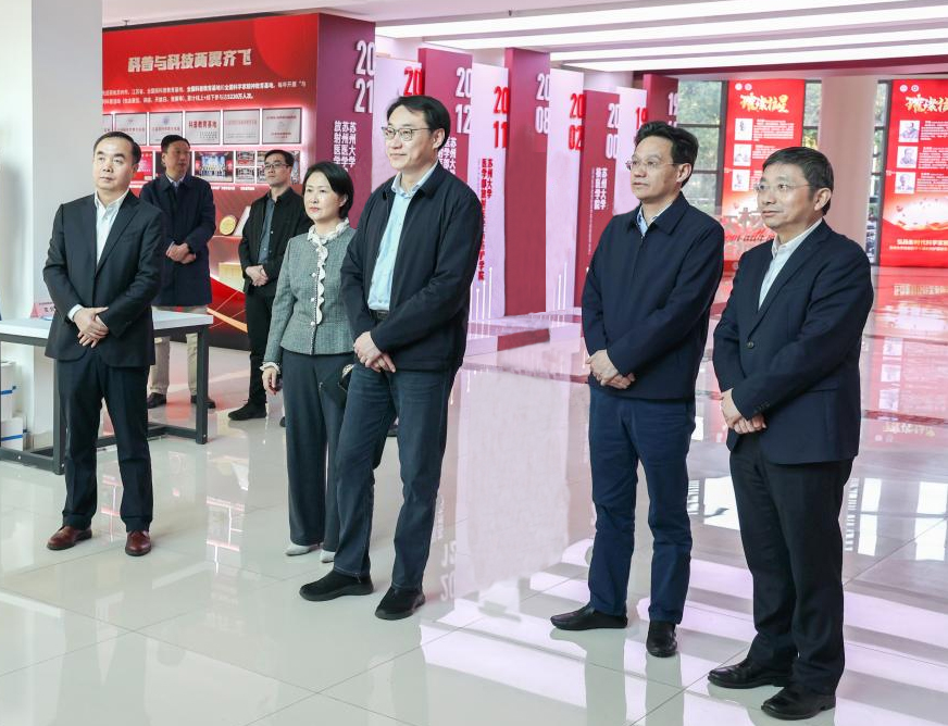 11月7日,省政府副省长赵岩一行到苏州大学调研。省政府副秘书长徐华勤,省教育厅厅长、省委教育工委书记江涌,苏州大学校长张晓宏,苏州市政府副市长季晶,中国科学院院士、苏州大学纳米科学技术学院院长李述汤等陪同调研。
