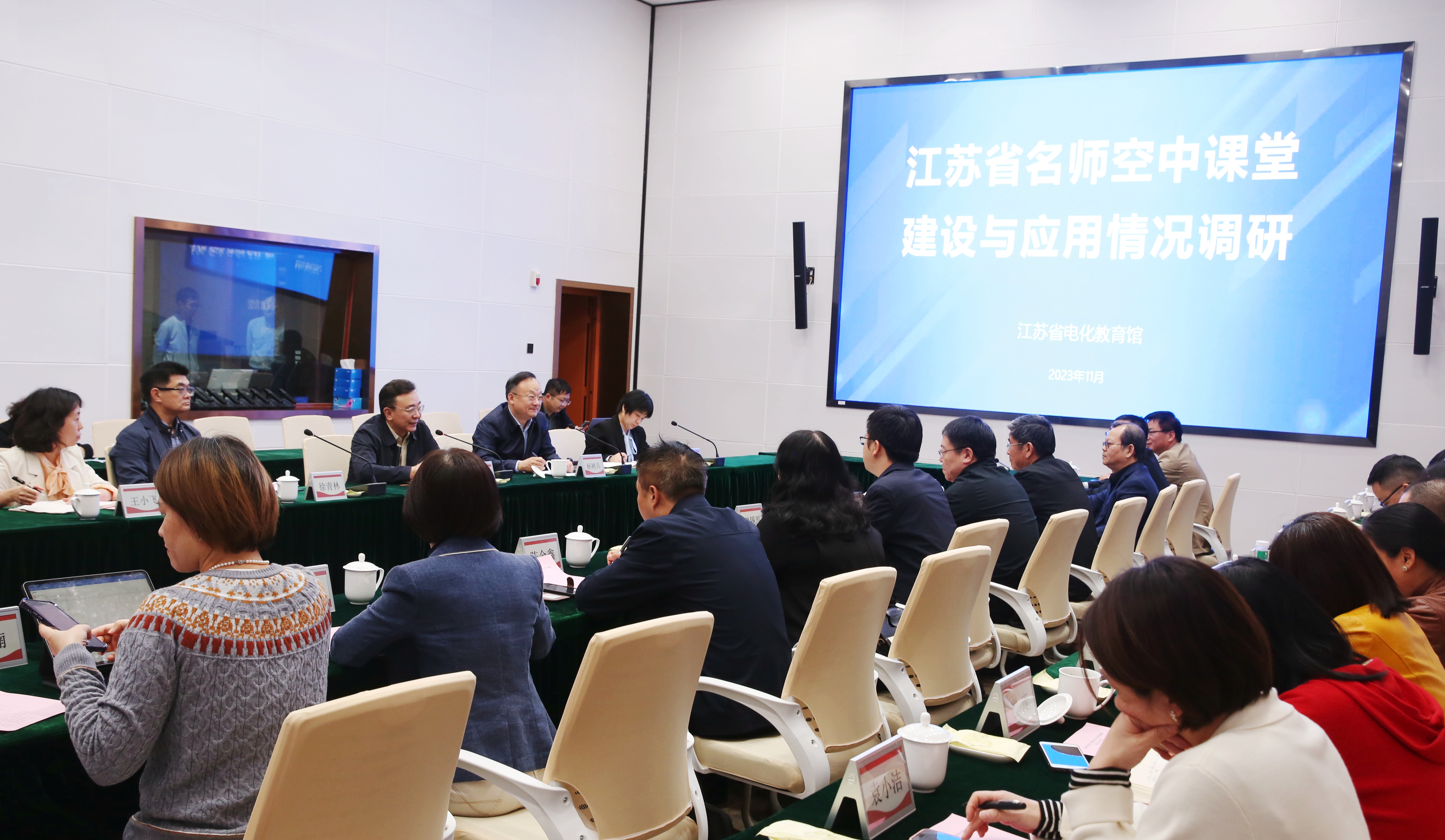 沈辉参观了面向全省中小学师生的公益活动“苏e直播”现场,现场调研了与全省各大中小学校紧密联系的教育信息化项目。沈辉主持召开专题调研座谈会,听取省电教馆主要负责人关于省名师空中课堂建设与应用工作,以及单位基本情况、各项业务工作推进情况和下一步工作安排的汇报。