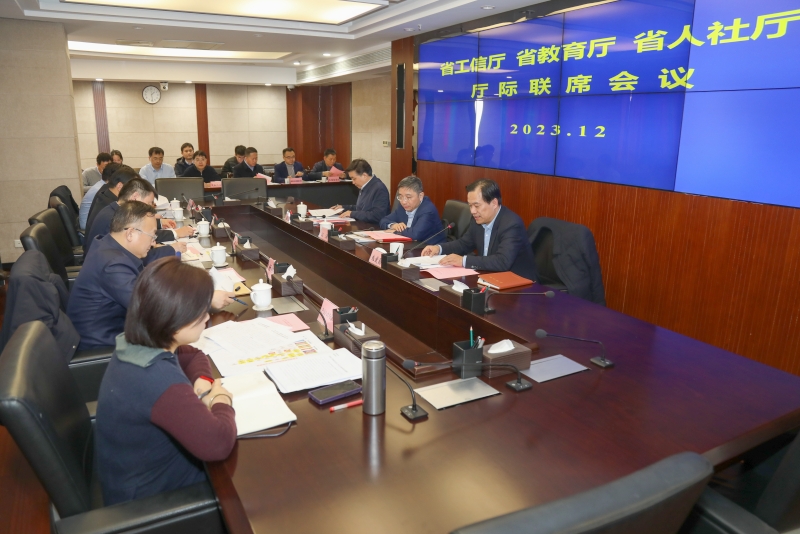 12月28日,省工信厅、省教育厅、省人社厅召开第一次厅际联席会议。省教育厅厅长、党组书记、省委教育工委书记江涌,省工信厅厅长、党组书记朱爱勋,省人社厅副厅长张宏伟出席会议并讲话。省教育厅副厅长袁靖宇、杨树兵,省工信厅副厅长李强出席会议。