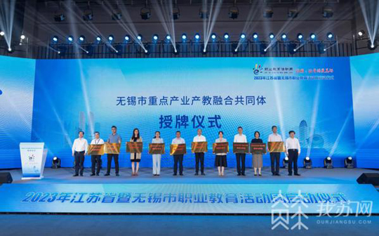 仪式还为10个无锡市重点产业产教融合共同体授牌,并宣读2023年江苏省职业院校技能大赛表彰决定。