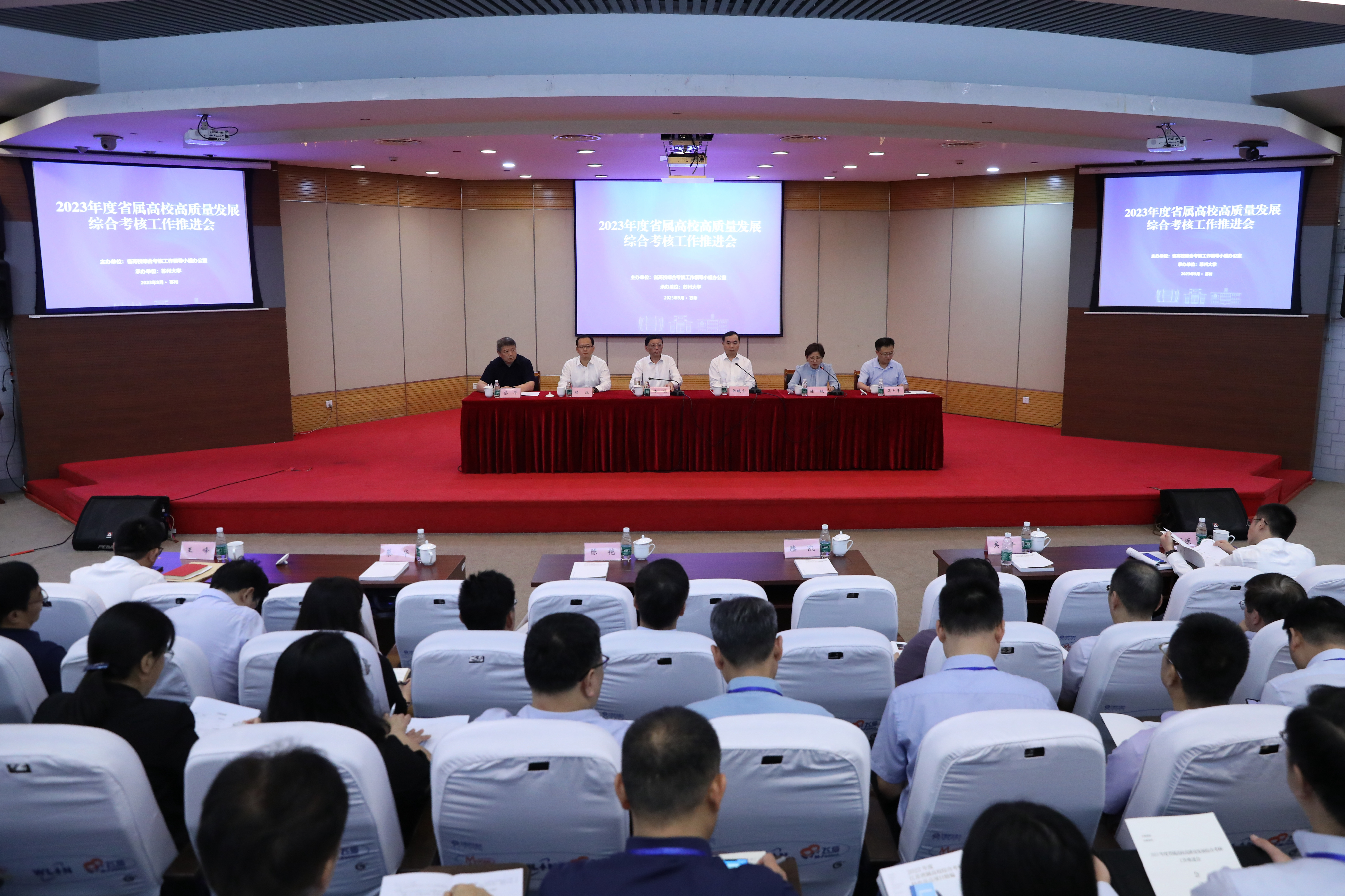 9月22日—23日,2023年度省属高校高质量发展综合考核工作推进会(本科专场)在苏州大学召开。省委教育工委副书记潘漫出席会议并讲话。省委组织部、省教育厅综合考核相关处室(单位)有关负责人,各省属本科高校党委组织部主要负责人及相关人员参加会议。