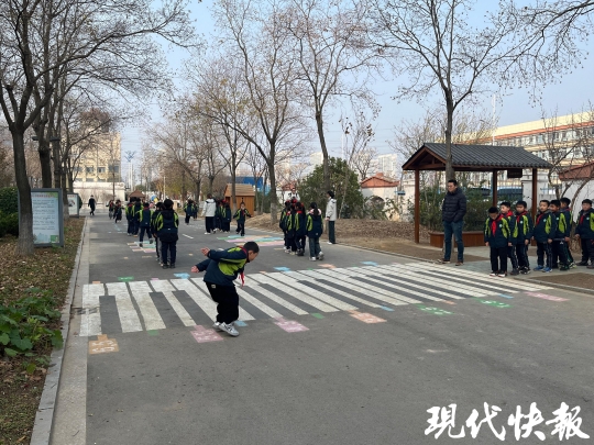 在操场进行羽毛球操活动、在校园道路上跳格子……在宿豫区燕山路小学大课间,每一处合适的空间都成了孩子们的活动场地。