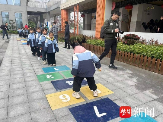 135米的游戏栈道环抱整个校园,200多平方米的教室是普通教室的1.5倍,模拟烹饪区、木工体验区、颜料创作区等空间次第展开,花园、山坡、小溪、树林、沙水池错落有致地分布各处,孩子们沉浸其中玩耍嬉戏……空间大、功能全、设施新是记者走进如师附小新城幼儿园的第一印象。
