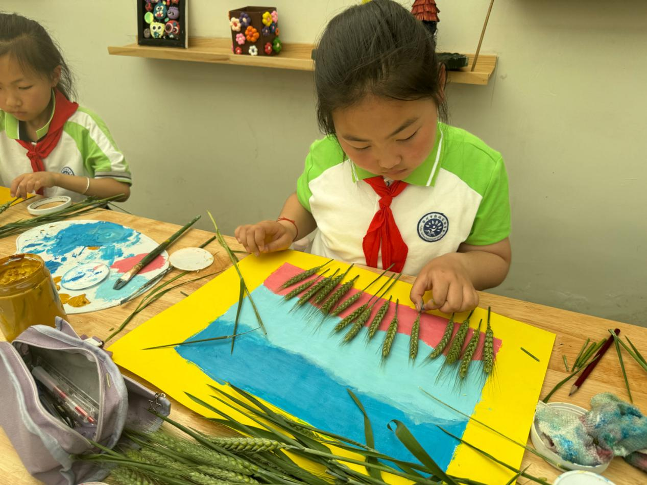 “做天地间一株麦子”,作为学校办学理念的体现,小麦元素在徐州市新城实验学校随处可见。周四下午的劳动课上,三年级学生正在用小麦作画。