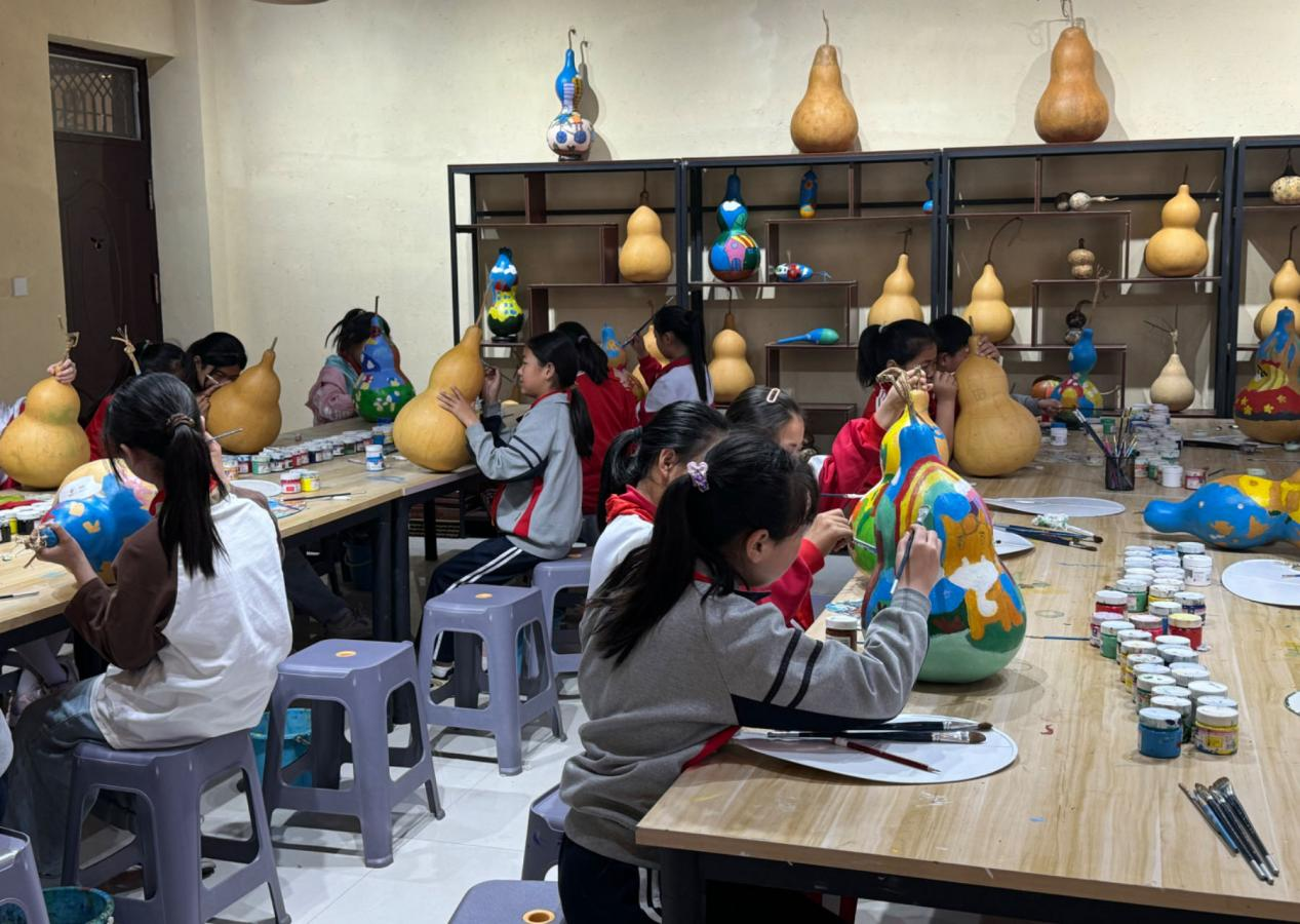 葫芦来自乡野田间,而在邳州市占城镇中心小学,葫芦成为了传承传统优秀文化、推进素质教育、培养学生劳动技能和提升艺术审美的有机载体。该校积极探索“葫芦娃”文化与多学科融合的课程内容,确立“多学科融合”实践课程目标,在每个年级开设了劳动综合实践课,组织学生全员、全程、全面参与葫芦等植物的种植、管理、采摘、艺术加工和欣赏。