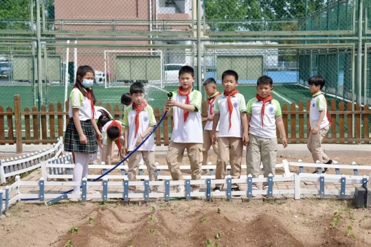 学校放假了,学校种植园的瓜果蔬菜谁来照料?于是,学校教师和学生们一起探究并创造了一个“智能农场”App,学生在家通过手机遥控就可以给菜地浇水,这样的创意也激发了学生的科学创造能力。在瓜果蔬菜成熟后,学校会举办果蔬小市场,孩子们将亲手种植的蔬菜进行成本计算、定价并售卖,在其中,孩子的数学计算能力和社交能力都得到了锻炼。