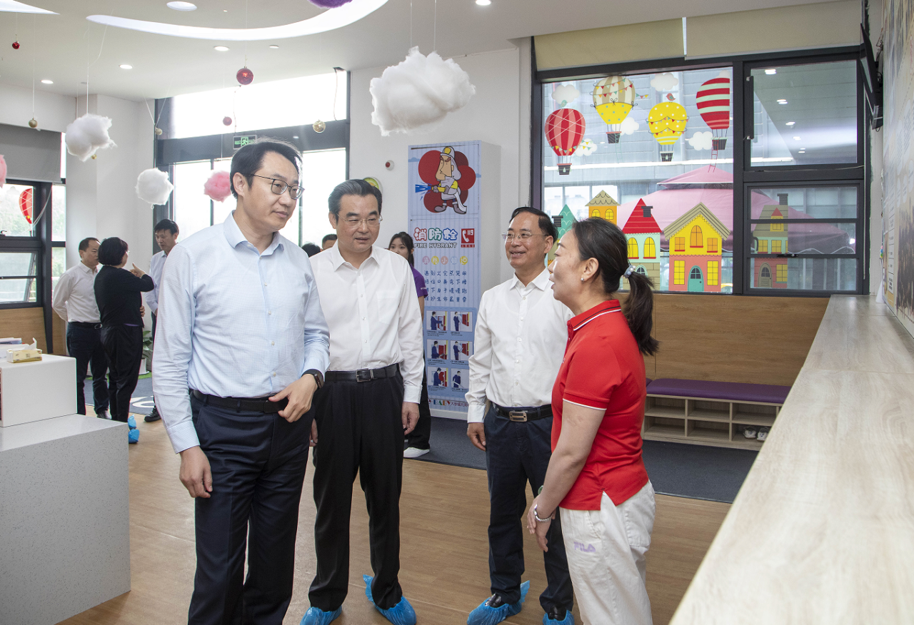 赵岩实地考察了学校校政企共建的“淮安市托育综合服务中心”、婴幼儿托育服务与管理专业实训室、健康医学院产教融合基地、大学生活动中心等,了解学校人才培养、产教融合、社会服务等各项工作开展情况,听取学校在“双高计划”建设、产教融合、科教融汇,尤其是依托淮安市卫生健康委员会合作共建的托育综合服务中心在人才培养、业务培训、社会服务等方面的工作汇报。