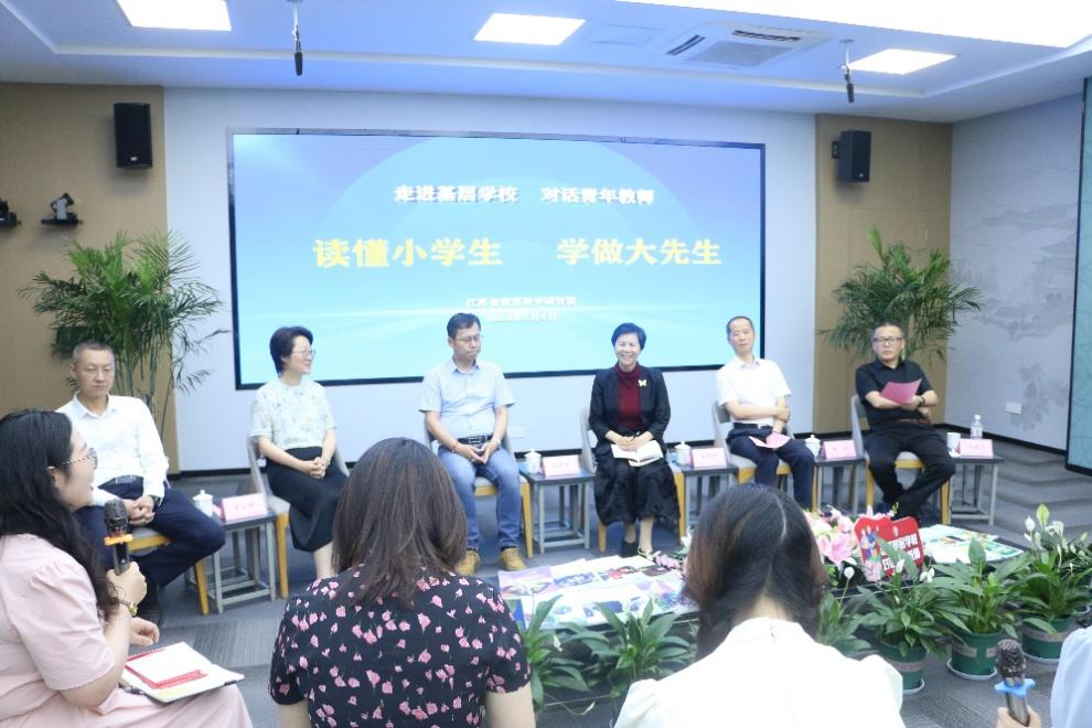 为激励广大青年教师弘扬教育家精神,以立德树人为使命,以改革创新为己任,不负韶华,砥砺前行,成为新时代好教师,进一步推动基层学校以高素质教师队伍建设实现教育高质量发展,江苏省教育科学研究院举办江苏好学校大家谈系列活动。7月4日,首站“走进基层学校 对话青年教师”——“读懂小学生 学做大先生”活动走进苏州市吴江区程开甲小学,省教育厅副厅长顾月华出席活动并与广大青年教师进行了深入对话交流。来自程开甲小学、吴绫实验小学、桃源小学、新城实验小学的教师代表分享师生成长故事,并与省教育厅、省教育科学研究院、苏州市教育局、苏州市吴江区教育局的领导、专家面对面对话。