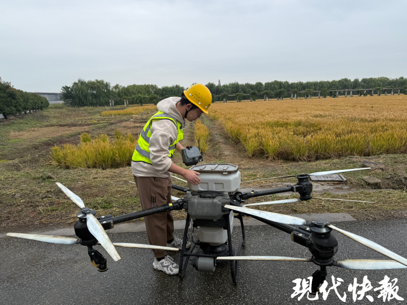 在不远处的稻田间,95后新农人周进超正在演示用无人机为稻田洒药。2019年从学校毕业后,周进超回乡创业,瞄准精品种植,通过流转承包了70亩地,把这块地变成了自己的“创业场”。他利用植保无人机,大大提高了农田管理的效率和精准度。“现在,一台机器一天就能完成近800亩地的作业量。”