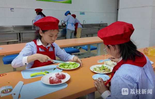 “从一年级尝试凉拌菜、水果拼盘,到现在能独立完成可乐鸡翅、水煮鱼,劳动技能的提升让我很有成就感!”学生帅欣伶分享道。另一位学生赵沐辰则自豪地说:“爸爸妈妈加班回家时,我能为他们做上一桌饭菜,看到他们欣慰的笑容,我觉得劳动特别有意义。”