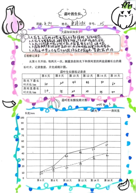 在泰州泰兴市襟江小学教育集团镇海分校,劳动教育正以常态化姿态融入各学科教学。五年级数学组结合教材内容,精心策划 “蒜” 你可爱系列活动,同学们全程观察记录蒜叶生长。数学教师徐杰琳说:“学生们运用课堂上学到的数学知识制成折线统计图,蒜叶的生长趋势一目了然。” 学生顾梓豪也分享了他的感受:“给了我完全不一样的学习体验,数学知识不再是课本上枯燥的公式,而是变成了探索生活奥秘的有力工具。”