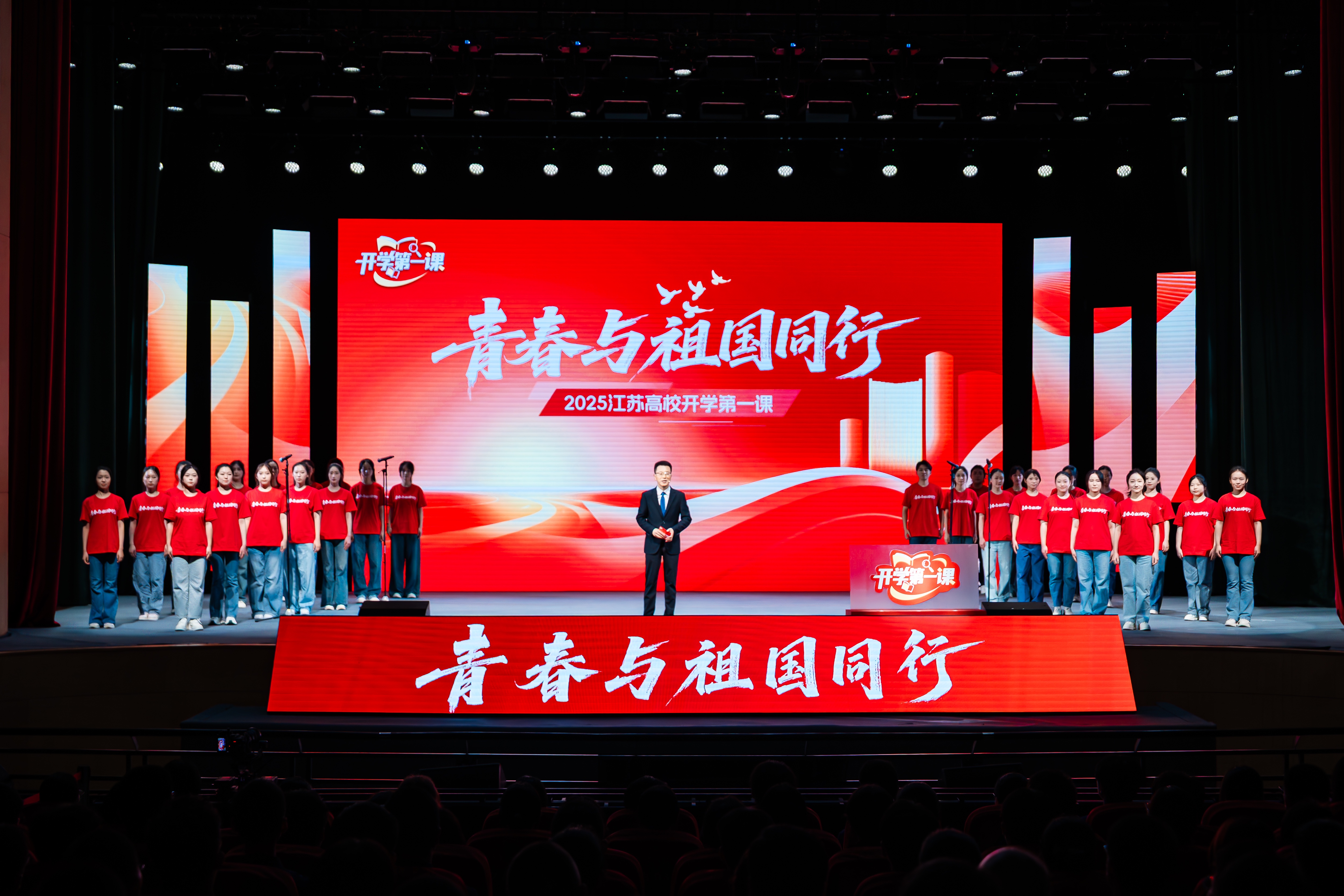 今年的“开学第一课”以“青春与祖国同行”为主题,以一堂“思政大课”的形式,邀请13位高校师生代表,分别在“生逢其时”“青春有为”“强国有我”三个篇章,讲述他们与祖国同行的青春故事。东南大学青年首席教授张川分享了紫金山实验室青年科研团队“怀揣通信报国之志,肩挑芯片强国之责”,一心一意做一事的奋斗历程;南京艺术学院单雯老师、江南大学黄晓丹教授带领同学们一起探寻藏在昆曲戏韵里、流淌在吴韵汉风中的文化根脉;苏州大学体育学院2025级新生、江苏省城市足球联赛苏州队球员陆子皓、赵文锦和陈开忠,通过视频的方式,讲述他们在绿茵场上全力拼搏的故事;江苏省“最美高校辅导员”、河海大学姜帆老师带领大学新生寻找属于自己的“节奏”“理想”和“自信”;南京师范大学陈庆荣教授鼓励大学生收好定目标、找方法、稳心态三个锦囊,在知识的探索中不断突破自我;中国青年五四奖章获得者、南京大学杜灵杰教授分享了在科研之路上以“敢闯无人区”的勇气、“甘坐冷板凳”的坚守和聚焦国家需求的强国担当攻坚克难、砥砺奋进的故事;把青春起跑线书写在雪域高原的年轻石油人,全国大学生基层就业人物、常州大学优秀毕业生易鉴政号召青年学子到祖国和人民最需要的地方挥洒青春热血;“梦想号”大洋钻探船副总建造师、江苏科技大学优秀毕业生伍常斌用“开拓创新、团结协作、攻坚克难、勇攀高峰”的“梦想号”精神和大家共勉;全国乡村振兴青年先锋、江苏农林职业技术学院优秀毕业生华梦丽用热爱和奋斗写下“新农人”“乡村振兴”的青春答卷;中国航空工业首席技术专家、南京航空航天大学杰出校友吴希明用深耕直升机领域40年的人生经历生动诠释“国之所需,吾之所向”,发出“强国有我”的时代最强音。