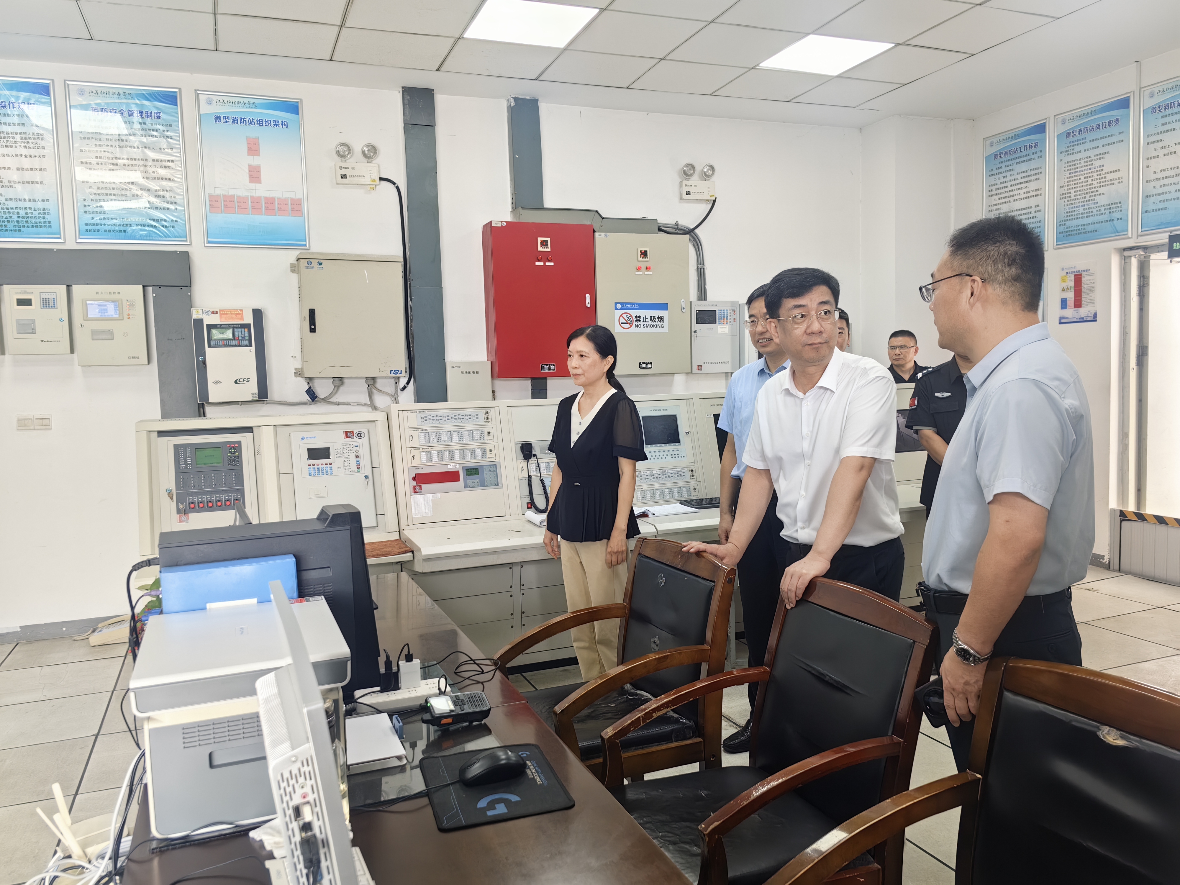 省教育厅副厅长、一级巡视员曹玉梅带队走进江苏省无锡师范附属太湖新城小学、无锡市和畅实验小学、江南中学太湖新城校区、无锡师范高等专科学校和无锡南洋职业技术学院,在中小学详细了解校园周边交通秩序维持和校园安保防范措施,在高校实地走访检查学生宿舍、食堂和数字化校园安全指挥中心等,与学校后勤安保人员进行交流,详细了解学校餐饮安全保障、消防及安全保障设施设备运行情况,重点检查食堂的每日食物留样、后厨卫生和消防设施。她强调,要扎实做好开学前后各项工作,确保新学期教育教学平稳运行,牢固树立安全发展理念,始终将校园安全放在首位,全面排查并整治安全隐患,筑牢校园安全防线,维护广大师生权益,保障校园长治久安。