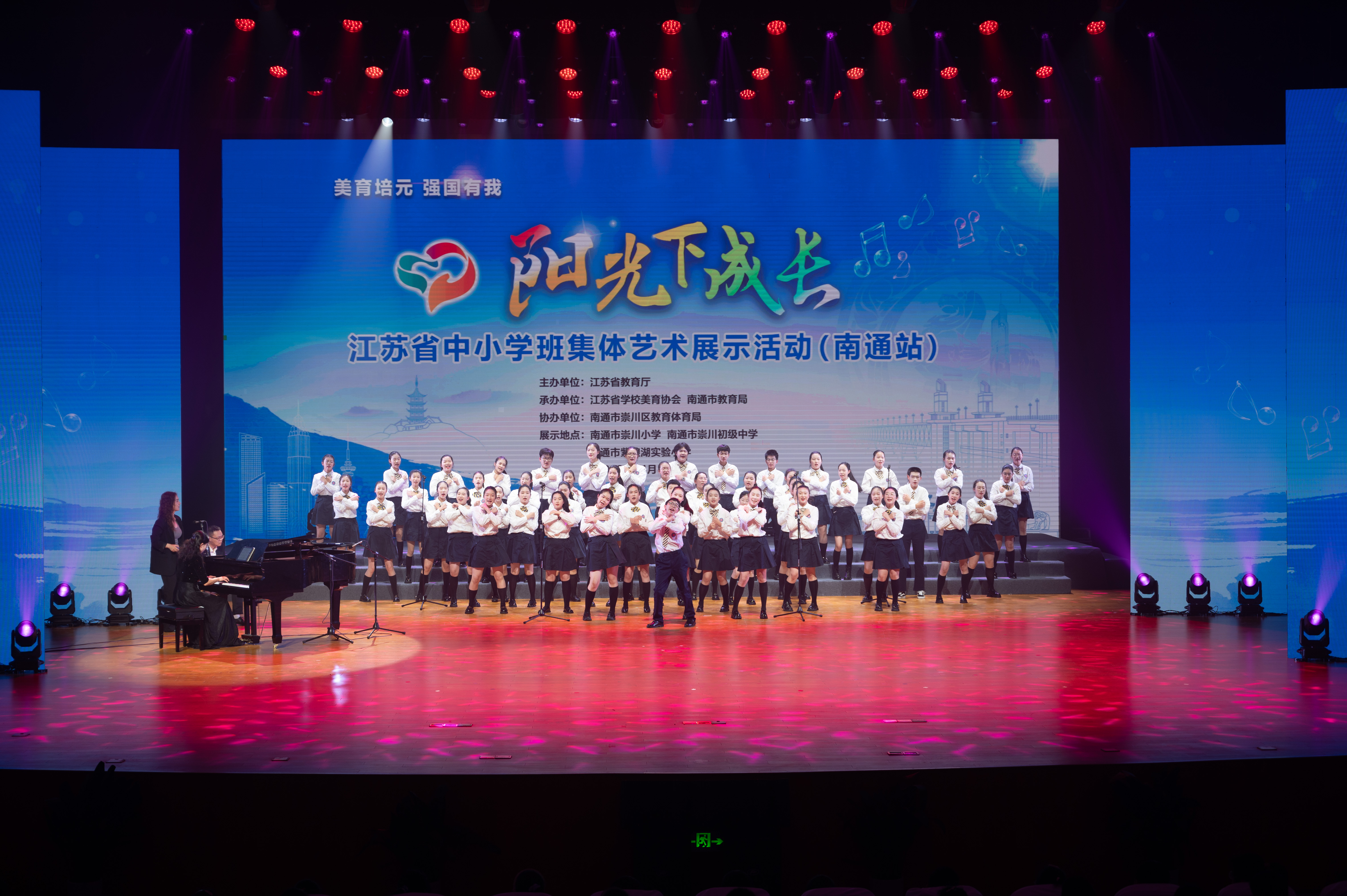 4月16日,由江苏省教育厅主办,省学校美育协会、南通市教育局承办的“阳光下成长”江苏省中小学班集体艺术展示活动(南通站)举行。省教育厅二级巡视员刘广鸣出席活动。省教育厅和各设区市教育局体卫艺处相关负责人,各设区市音乐、美术教研员,以及观摩教师共计400余人参加活动。