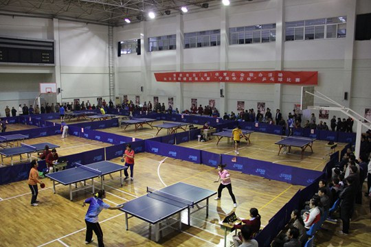 鼓楼区第九届“宁海中学杯”乒乓球比赛现场