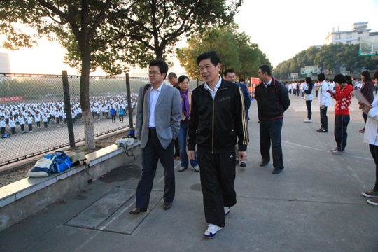 朱卫国副厅长来到西山运动场参加大一新生的早操活动