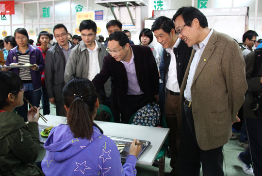 中午,第六食堂就餐的学生熙熙攘攘,荤素搭配的饭菜热气腾腾。朱卫国在江苏大学党委书记范明教授陪同下,视察食堂操作间,并与师生一同用餐。用餐过程中,朱卫国向就餐学生询问了食堂菜价和每月消费情况,充分肯定了学校食堂在食品供应、安全保障、价格稳定、品种丰富等方面的做法和经验,并勉励学校后勤保障人员把伙食工作做好,为学生提供优质服务。