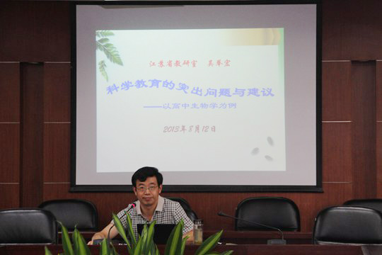 8月12日下午,省教育厅副厅长胡金波出席厅基教处、体卫艺处、督导室、语工处联合举行的专题学习会。江苏省首批教授级中学高级教师、省教研室教研员吴举宏应邀作《科学教育的突出问题与对策》专题讲座。