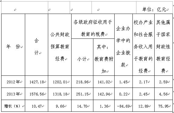 2.2013年公共财政教育支出占公共财政支出比例及增减情况表