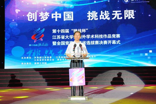 6月6日上午,第十四届“挑战杯”江苏省大学生课外学术科技作品竞赛暨全国竞赛江苏省选拔赛决赛在淮阴工学院隆重开幕。曹卫星副省长出席并讲话。省教育厅副巡视员洪流出席开幕式。来自省内75所高校师生代表2000余人观看了风采展示节目。