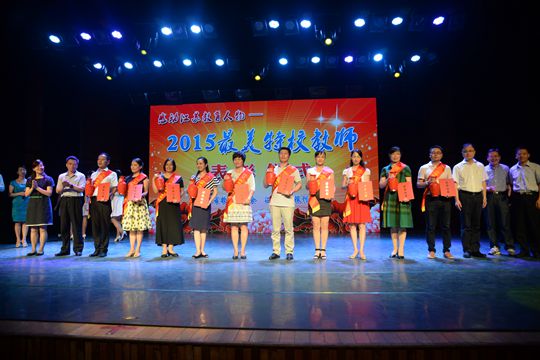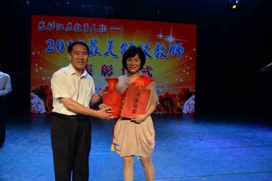 9月8日下午,全国第31个教师节来临之际,“感动江苏教育人物——2015最美特校教师”表彰仪式在南京举行。省政府副秘书长陈少军出席仪式并为获奖教师颁奖,省教育厅厅长沈健出席仪式并作讲话,省教育厅副厅长朱卫国、副巡视员孙曙平,省教育基金会理事长祭彦加、常务副理事长步锦昆,南京艺术学院党委书记管向群,江苏第二师范学院党委书记李洪天,中国教育学会特教专业委员会顾问委员会主任程益基等为获奖教师颁奖。