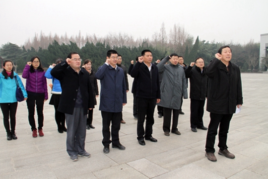 洪流一行瞻仰了泗洪革命烈士陵园,向泗洪县烈士纪念碑敬献花篮,重温入党誓词,并参观泗洪革命烈士纪念馆。