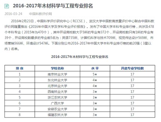 南京林业大学木材科学与工程专业开设于1952年,为国家级特色专业和江苏省品牌专业。2012年被列为“江苏省十二五重点专业建设项目”,2014年被遴选为国家卓越农林人才教育培养计划改革试点建设专业,2015年再次被评为江苏省“十三五品牌专业”建设工程项目,2016年通过国际木材科学与技术协会(SWST)专业教育认证。在国内第三方评价中,专业排名多次位居全国第一。专业所在的“林业工程”一级博士点学科为国家级重点学科,同时也是江苏省优势学科。