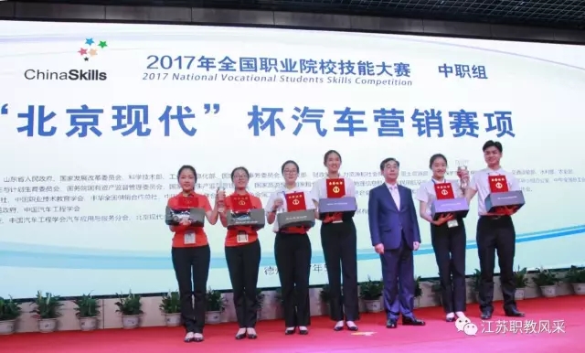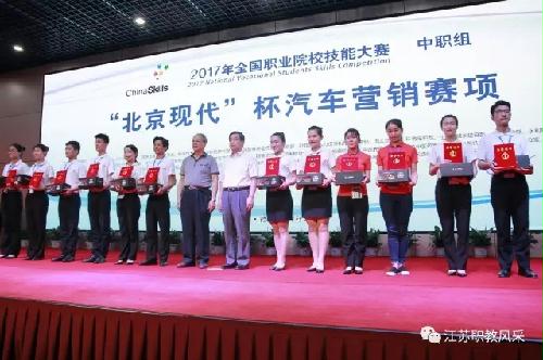紧张而又激烈的全国职业院校技能大赛中职组“北京现代”杯汽车营销赛项于2017年5月26日落下帷幕,江苏代表队喜获1金1银。其中南京金陵中等专业学校李璐、纪玉欣两位同学获一等奖,常州刘国钧高等职业技术学校李春梅、邓蓉两位同学获二等奖。