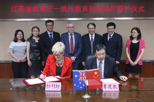7月11日,省教育厅厅长葛道凯会见来访的澳大利亚维多利亚州教育培训厅吉尔・卡里斯特厅长一行,双方就加强江苏与澳大利亚维州的教育交流交换意见并签署了两省州学前教育合作意向书。