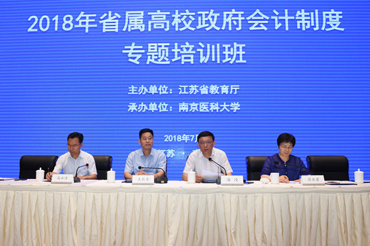 7月19日-21日,由省教育厅主办、南京医科大学承办的2018年省属高校政府会计制度专题培训班在南京市江宁区举行。省教育厅副厅长潘漫、南京医科大学党委书记王长青、总会计师马水清等出席培训并讲话。
