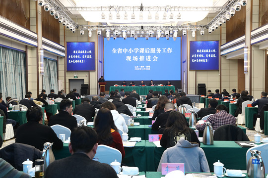 12月30日,全省中小学课后服务工作现场推进会在泰州市姜堰区召开。会议回顾总结前一阶段课后服务工作推进情况,交流经验做法,分析形势任务,研究部署下一阶段重点工作,以更大力度、在更大范围推进课后服务,不断提升课后服务质效。省教育厅厅长葛道凯,副厅长顾月华,省纪委监委派驻省教育厅纪检监察组组长李文飙,省发改委、财政厅、人社厅相关负责人,泰州市人民政府副市长王学锋,姜堰区委书记方针等出席会议,省教育厅相关处室负责人,各设区市及部分县(市、区)教育局负责人共80余人参加会议。顾月华主持会议。