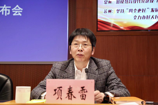 3月30日,省教育厅召开“数说‘十三五’ 一同看教育” 无锡、常州、苏州专场新闻发布会。无锡市委教育工委书记、市教育局局长范良,常州市委教育工委书记、市教育局局长杭永宝,苏州市教育局副局长项春雷作综合发布,并回答记者提问。