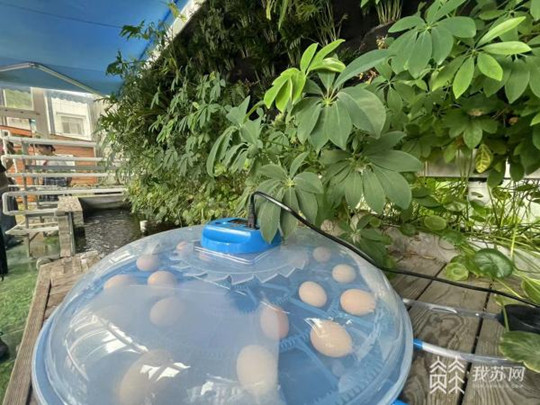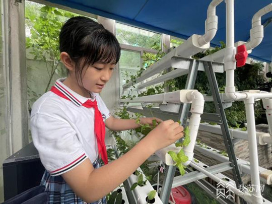 在南京市双塘小学的校园里,有一个绿意盎然的生态园。园子里,有菌菇培养小屋,有鱼水共生系统,有无土栽培各种绿植,还有孩子们养的小鸭、小鹅。三年级学生黄夕茜说:“我特别喜欢学校生态馆,有小花小草,里面也有小鸭子、小鸡在孵蛋,特别可爱。”