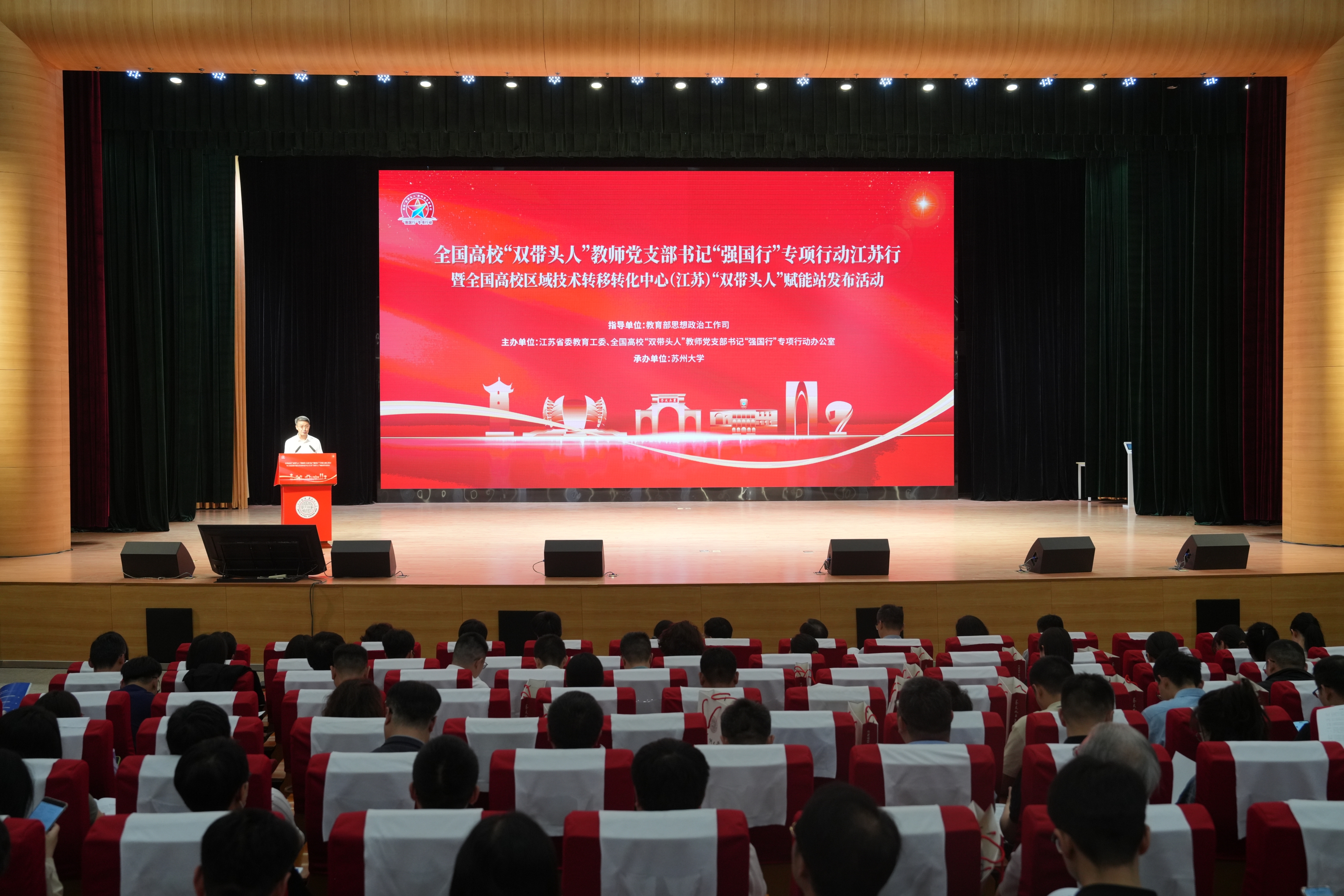 5月22日,全国高校“双带头人”教师党支部书记“强国行”专项行动江苏行暨全国高校区域技术转移转化中心(江苏)“双带头人”赋能站发布活动在苏州大学举行。省委教育工委副书记、省教育厅党组成员潘漫,全国高校“双带头人”教师党支部书记“强国行”专项行动办公室主任、南京大学党委副书记焦瑞华出席并讲话,全国高校思想政治工作网负责人出席。