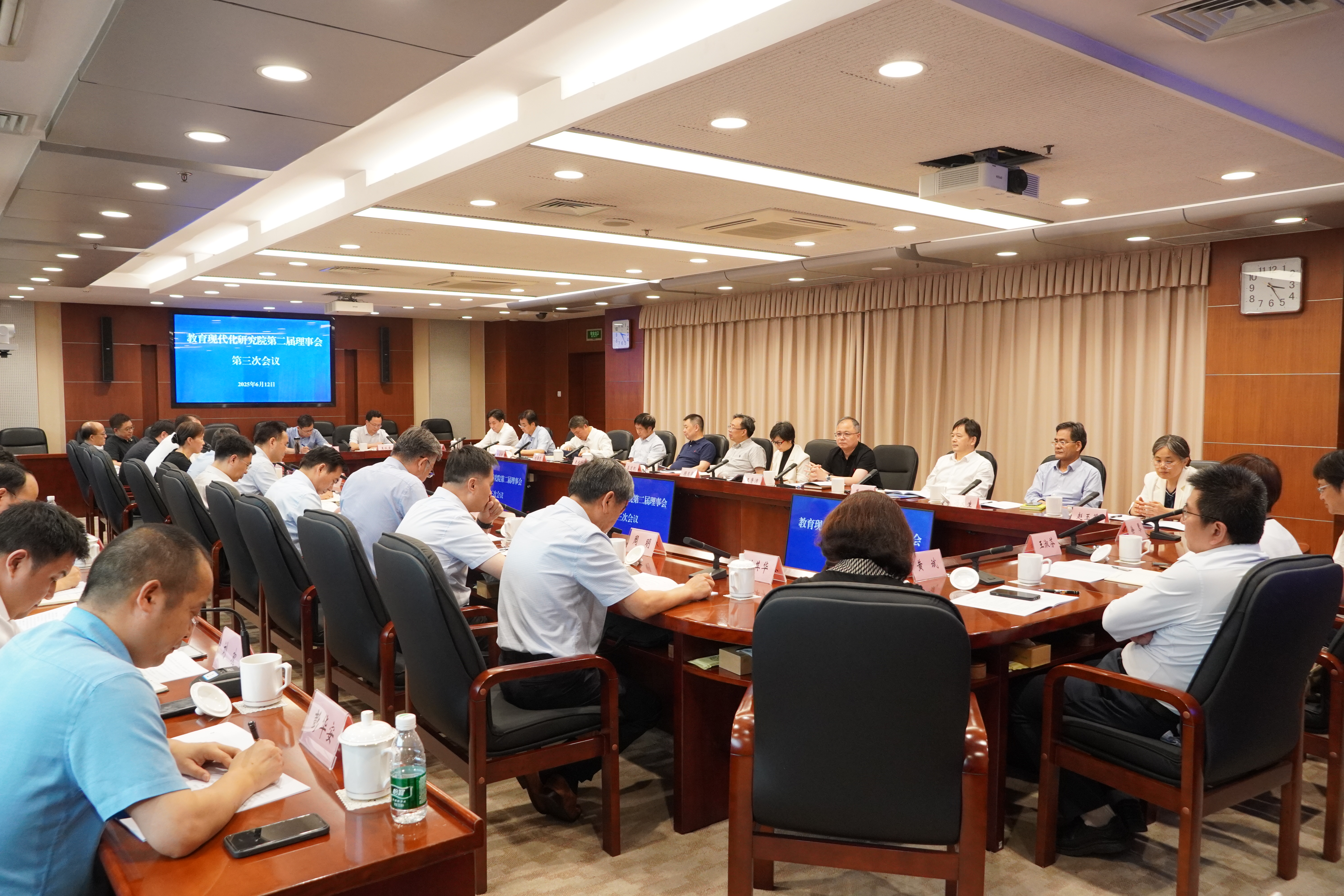 6月12日,教育现代化研究院第二届理事会第三次会议在省教育厅召开。省政协教卫体委员会主任、教育现代化研究院理事长葛道凯,省教育厅副厅长、一级巡视员、教育现代化研究院副理事长顾月华出席会议并讲话。省教育厅原副厅长袁靖宇作专家报告,江苏第二师范学院党委书记王鲁沛作第三届“教育智库·扬子江对话”筹备事宜报告,省社科联副主席刘西忠出席会议并作研讨发言,省教科院院长、党委书记、教育现代化研究院院长陆岳新作工作报告。来自省教育厅、省社科联、省社科院、省教科院以及有关高校、科研院所等单位的40多位理事和专家参加会议。
